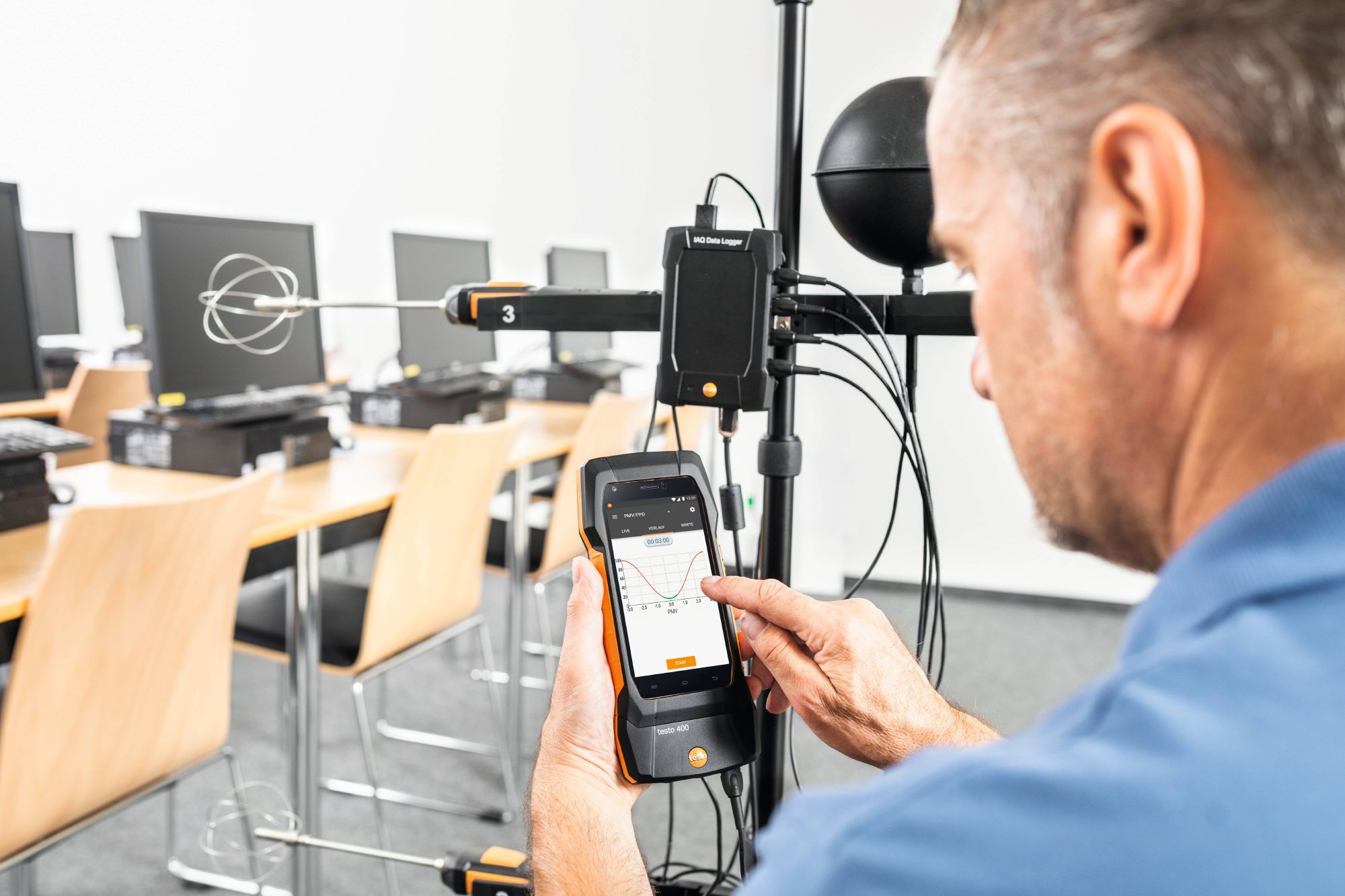 Идеальный комплект для профессионалов оценки качества воздуха в помещении, предназначенный для определения качества воздуха в помещении и уровня комфорта. В комплект входят универсальный измерительный прибор testo 400 с интуитивными ассистентами для измерений, зонд CO₂ (с Bluetooth®-рукояткой), зонд турбулентности и сферический зонд Ø 150 мм (оба с фикс. кабелем). Используйте стойку для установки зондов в соответствии с требованиями стандартов. Логгер данных IAQ, установленный на стойке, (логгер заказывается отдельно), позволяет вести долгосрочные измерения до 2 недель без участия измерительного прибора.