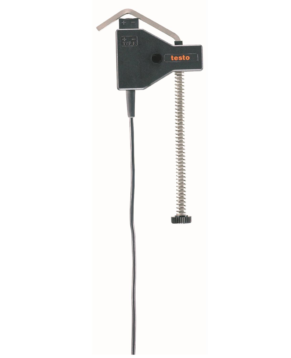Зонд температуры с термопарой (т/п типа K) и зажимной скобой для измерения температуры на поверхности труб диаметром от 5 до 65 мм. Зажимная скоба позволяет быстро и легко установить зонд на трубу.