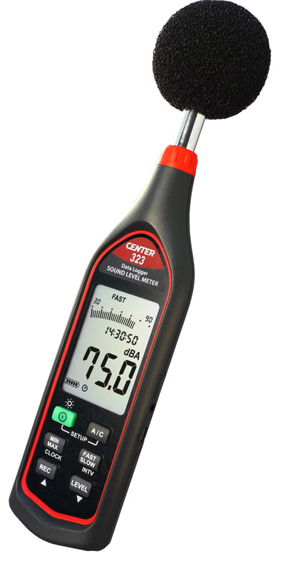 Измеритель шума, 30 дБ … 130 дБ (разр. 0,1 дБ); полоса частот 20 Гц … 8 кГц ; динамич. диапазон 60 дБ; погрешность ±1,4 дБ; фильтры А, С; 2 изм./ с; цифр. и лин. шкалы; подсветка дисплея; авто и ручной выбор предела; аналоговый выход; эргономичный дизайн; USB интерфейс и ПО; часы и календарь; регистратор данных (64000); питание 4 х 1,5 В (ААА); 264 х 63 х 29 мм; масса 245 г
