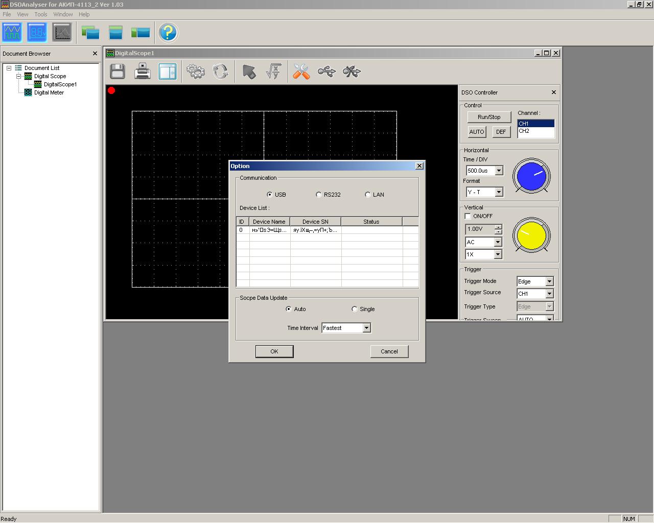 Всё таки, прежде чем отсылать осциллограф в сервис центр на неизвестный срок (а он мне нужен, и, в принцыпе, он работает), мне бы хотелось, чтобы вы взглянули на несколько картинок. Может быть дело не в самом осциллографе, а в ПО для него.