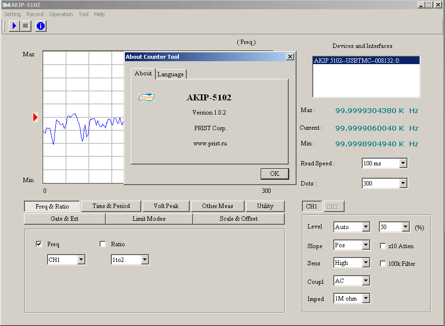 Рисунок 3. Интерфейс ПО АКИП-5102 |