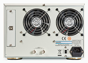 Электронная нагрузка обеспечивает связь с внешним компьютером по стыку RS-232, GPIB, LAN или USB (опции). В режиме дистанционного управления (ДУ) и программирования электронная нагрузка обеспечивает управление всеми режимами работы и настройками. Программирование обеспечивается при помощи набора команд (язык SCPI). Каждый тип шасси (3302F, 3305F, 3300F) имеет только один слот для установки опциональных модулей ДУ (GPIB, RS-232, USB или LAN). На рисунке 7 изображена задняя панель шасси 3305F с установленным модулем интерфейса LAN.