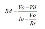 Для корректной работы светодиода необходимо чтобы напряжение источника от которого питается светодиод, было выше уровня порогового напряжения светодиода. В случаях когда это условие не выполняется (т.е. при Vo<Vd), необходимо ввести дополнительный параметр Rr (сопротивление токограничевающего резистора). На рисунке 4 представлена кривая зависимости V-I при данном типе подключения.