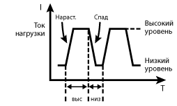 Динамическая нагрузка. В последнее время широкое применении получили нагрузки, имеющие род работы, когда сброс и наброс нагрузки происходит практически мгновенно от холостого хода до максимального значения. Например, работа компьютерного жёсткого диска, при работе которого через него протекает различный ток. При этом частота изменения нагрузки находится в пределах от единиц герц до единиц килогерц. Такой режим работы ИП называется динамическим. Динамический режим применяется для тестирования переходных процессов в источниках питания. |