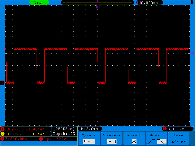 | F – 200 Гц; Vp – 1,5 В; Скважность 10 % | F – 200 Гц; Vp – 1,5 В; Скважность 75 % | |
