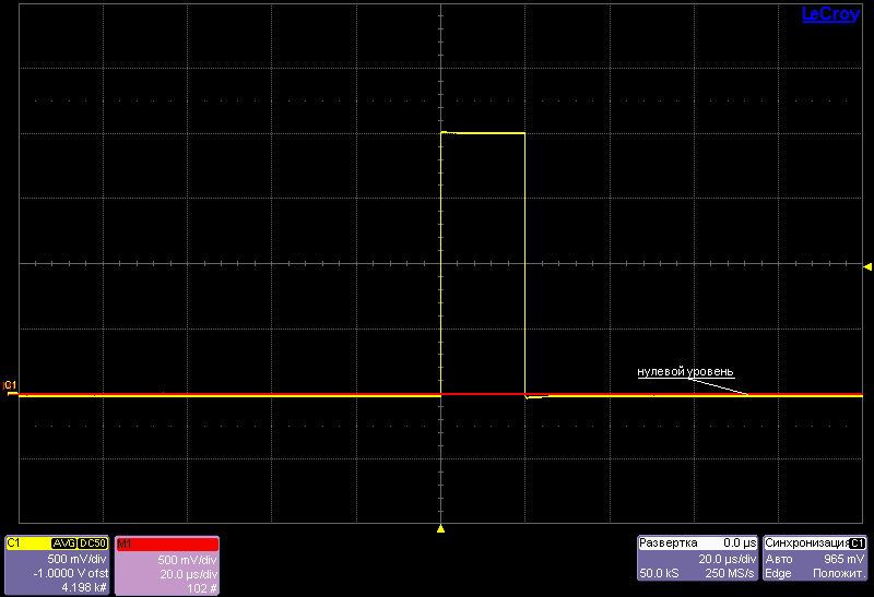 Пример формирования импульса симметричной амплитуды по умолчанию и последующая компенсация смещением приведены на рисунках 10 и 11.
