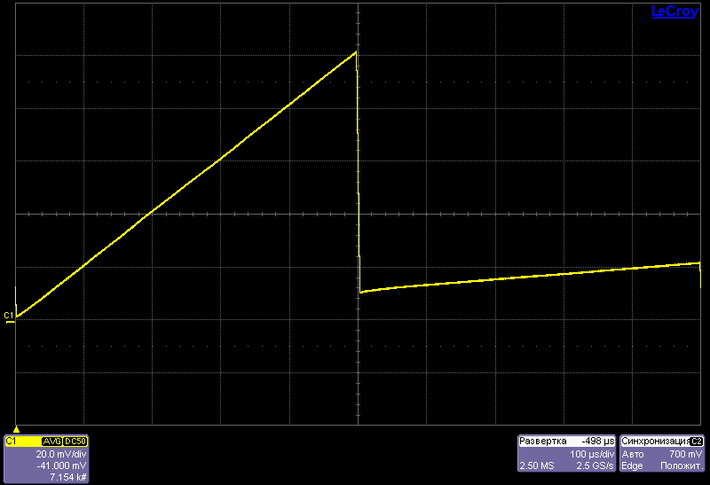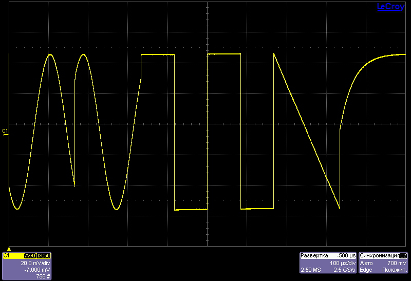 В этом случае требуется очередная коррекция постоянного смещения. Каждый раз при необходимости постоянного изменения амплитуды импульса, потребуется отслеживать уровень постоянного смещения этого импульса, всё это значительно снижает производительность генератора сигналов произвольной фирмы. Увы, но так работает большинство генераторов сигналов произвольной формы, присутствующих в настоящий момент на российском рынке и это касается не только импульсных сигналов, но и сигналов других форм.