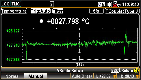 Вольтметры серии GDM-7906X, как универсальный прибор поддерживают измерения температуры и идеально подходят для работы с различными температурными датчиками (3 типа!), такими как, термисторы, термосопротивления/ RTD и термопары. Следует отметить, что новинки, в отличие от ряда конкурентных моделей других производителей и ранее выпущенных моделей GW Instek поддерживают широкий перечень термопар, часто применяемых в температурных измерениях (J, K, N, R, S, T, B, E -типа), используя входные гнезда напряжения на панели для подключения термопар и вычисления температуры, основанного на флуктуациях напряжения. Такая техническая возможность позволяет использовать вольтметр как регистратор температуры, в сочетании с его большой внутренней памятью и функцией построения графика температурного тренда. (рис. 4)