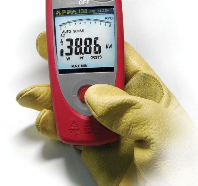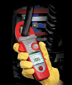 Работа при измерении тока выполняется одной рукой при помощи механического курка для размыкания губок (хват выполняется правой рукой) с задействованием при необходимости префиксной кнопки (HOLD/ DCA Auto-Zero). Эргономичный корпус хорошо ложится в ладонь, рельефные и визуально выделенные органы управления позволяют пользователю легко работать даже при ношении средств защиты электротехнического персонала.