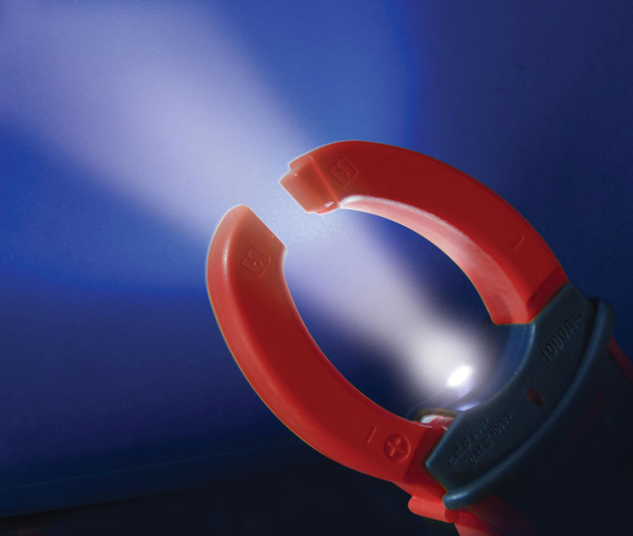 - Встроен светодиодный фонарик локальной подсветки рабочей зоны (при работе с клещами).