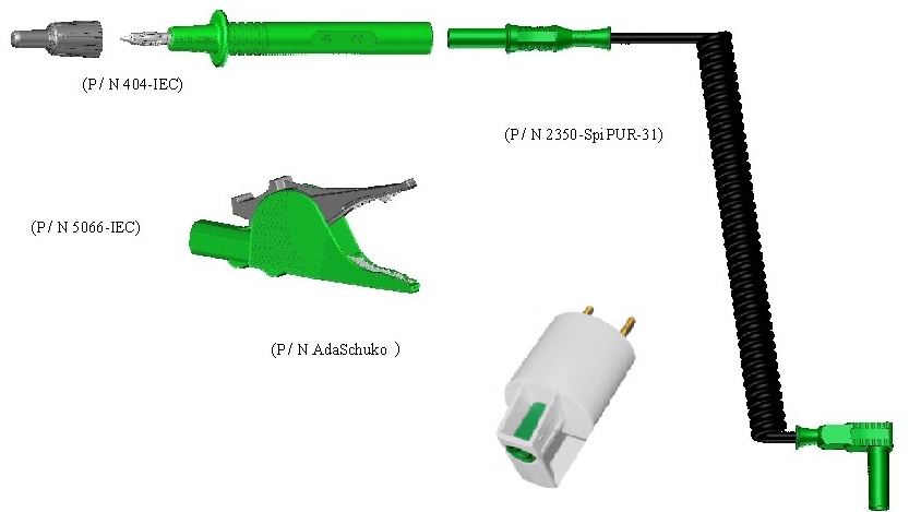- 4 мм наконечник для пробника (подпруж. щуп «банан» х гнездо «мама» с изолирующим колпачком): 1 шт - кат. 404-IEC;