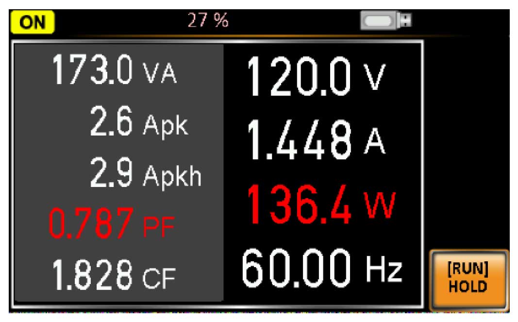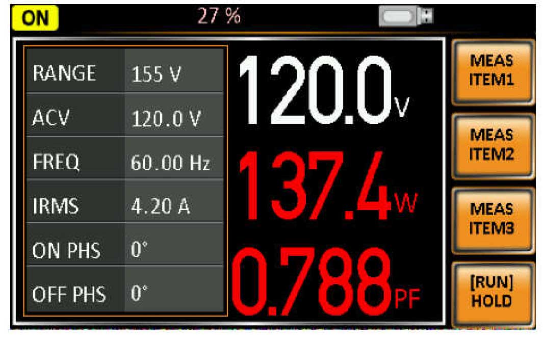 Источники питания APS-77200 и APS-77300 имеют 7 измерительных функций ваттметра (Uскз, Iскз, F, P, Q, PF, Iпик) с возможностью одновременного отображения на дисплее, а также измерение бросков пускового тока с функцией удержания (Ipk hold) и коэффициента амплитуды (CF). Перечисленный выше набор измерительных функций оптимален для испытаний в светодиодной промышленности и тестирования энергопотребления в режиме ожидания. Режим ARB позволяет формировать 7 видов форм сигналов, таких как, синусоидальная, треугольная, прямоугольная, усеченная синусоидальная, сигнал с измененным коэффициентом амплитуды, выброс и ряд Фурье, а также создавать до 20000 комбинаций данных форм, для создания различных тестов аномалий и отклонений напряжения и мощности. Для записи предустановок настроек предусмотрено 10 ячеек внутренней память. Так предусмотрен выбор начальной работы источника питания при включении, это или включения прибора с заводскими установками или автоматически запуск одного из режимов: Имитация, Последовательность или Программирование.