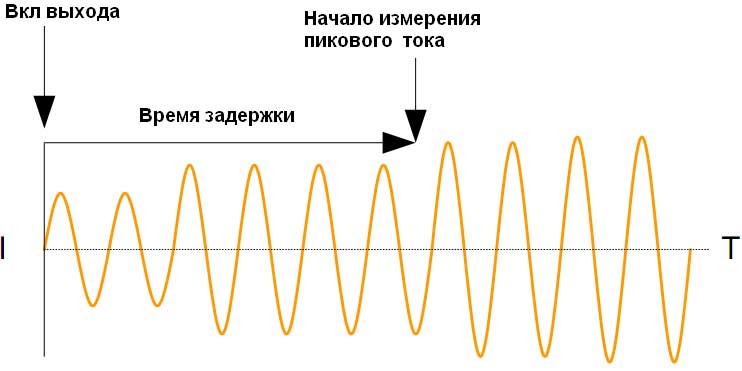 Установка времени задержки измерения пикового тока