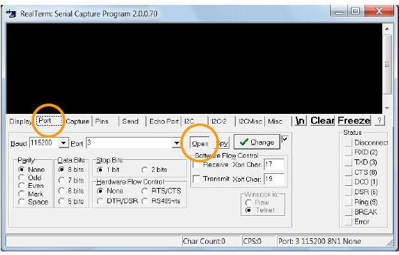 Рисунок 7. Окно конфигурирования ПО Realterm |
