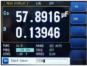 После калибровки измерителя LCR-76000 серии в полном частотном диапазоне пользователь может свободно менять частоту испытаний (рис.3) для выполнения измерений (не отключая тест-сигнала и не производя никаких манипуляций коммутации на площадке). Это экономит время и значительно повышает производительность за счет отказа от многочисленных калибровок тестовой площадки с подключенным компонентом при выполнении повторных типовых замеров со сменой частот.