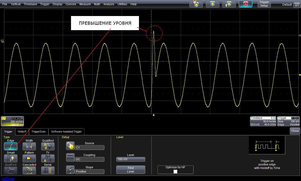 - На сегодняшний день режим TriggerScan™, используемый в осциллографах LeCroy, является наиболее совершенным инструментом регистрации редких артефактов в высокочастотных сигналах.