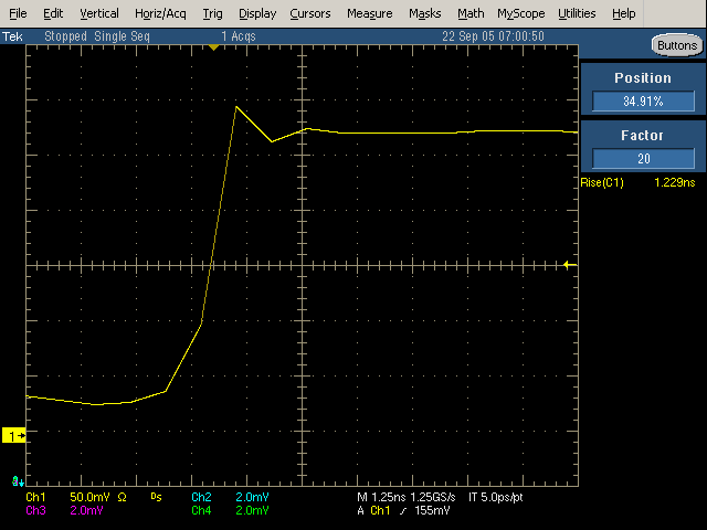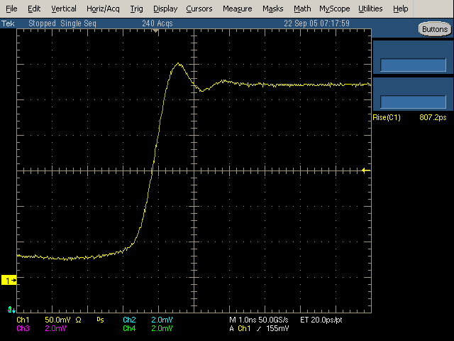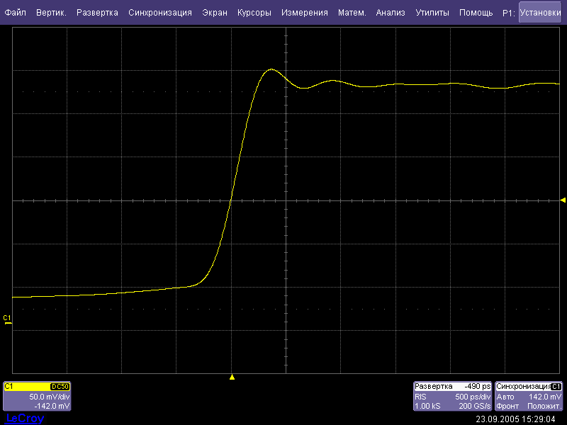 Как видно, картинка вызывает не меньше смеха, чем приведенная у LeCroy, да и время нарастания составляет 1,229 пс, что в 1,53 раза больше декларированной величины.