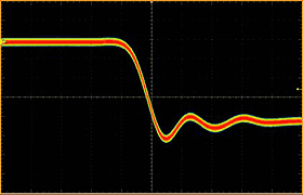 Отсюда следует, что если частота сигнала не превышает скорость захвата осциллограмм, то осциллограф будет захватывать каждый единичный фронт сигнала и соответственно каждую аномалию. Когда частота сигнала превышает частоту обновления экрана осциллографа, то осциллограф не сможет захватывать каждый фронт сигнала, и количество захватываемых прибором аномалий за секунду будет равняться частоте появления аномалий, делённой на частоту сигнала и частоту обновления экрана осциллографа.