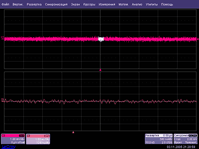 Рисунки 3 и 4 показывают измерение пиковых значений на одном и том же сегменте осциллограммы. Хотя растянутая развертка выглядит менее зашумленной, но имеет такое же пиковое значение шума.