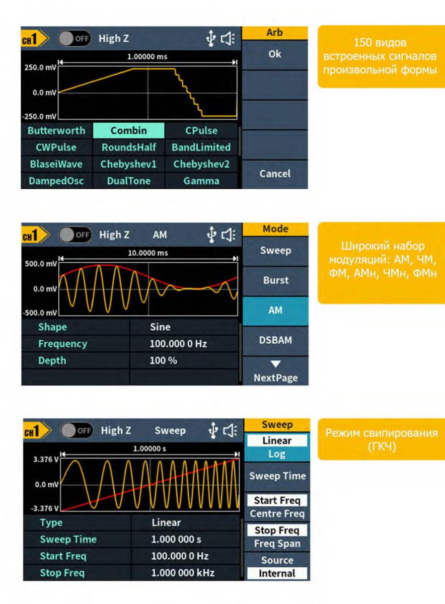 - Встроенный частотомер: 100 мГц ~ 100 МГц (7 разрядов: частота, период)